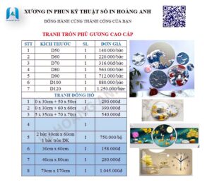 Kích thước và bảng giá: