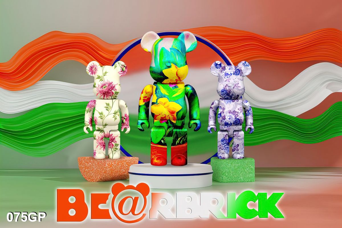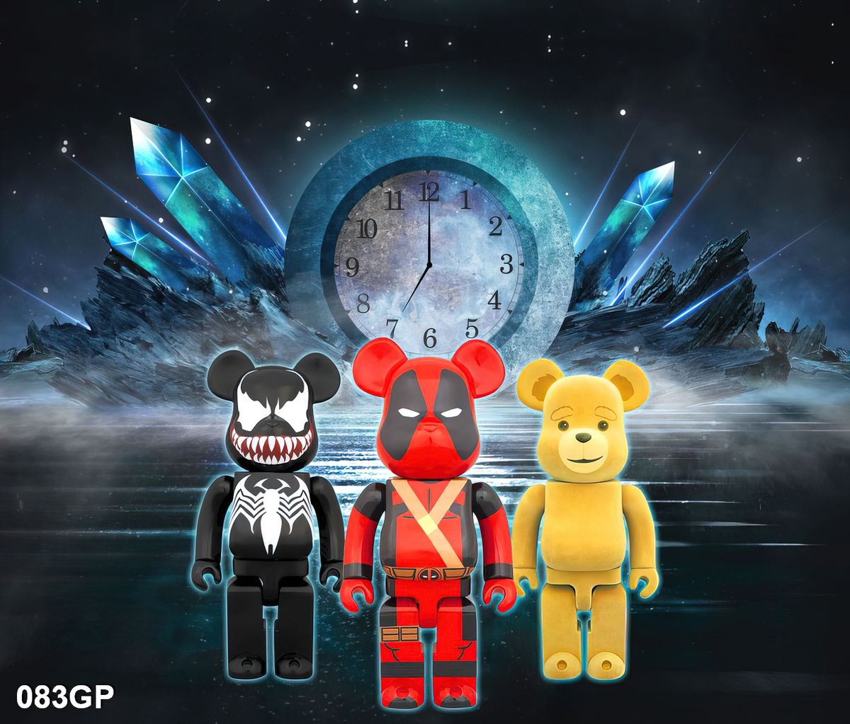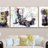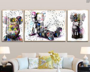 Bộ 3 tranh tráng gương gấu bearbrick Sang Trọng Hiện Đại