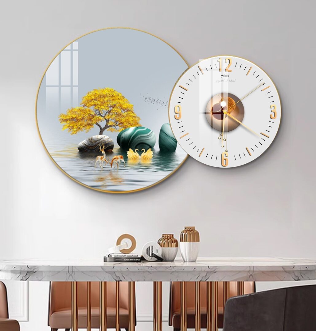 Đồng hồ kèm tranh tráng gương TD77