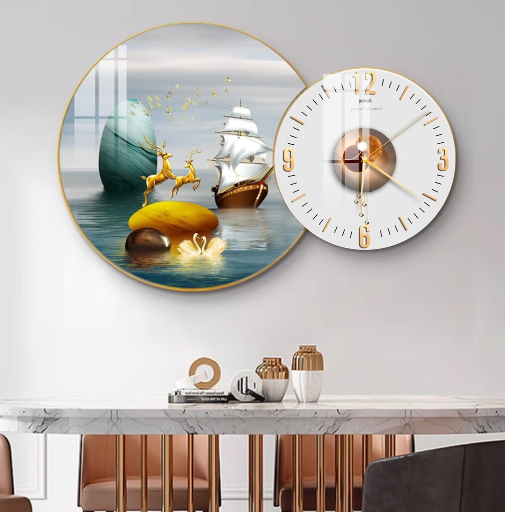 Đồng hồ kèm tranh tráng gương TD85