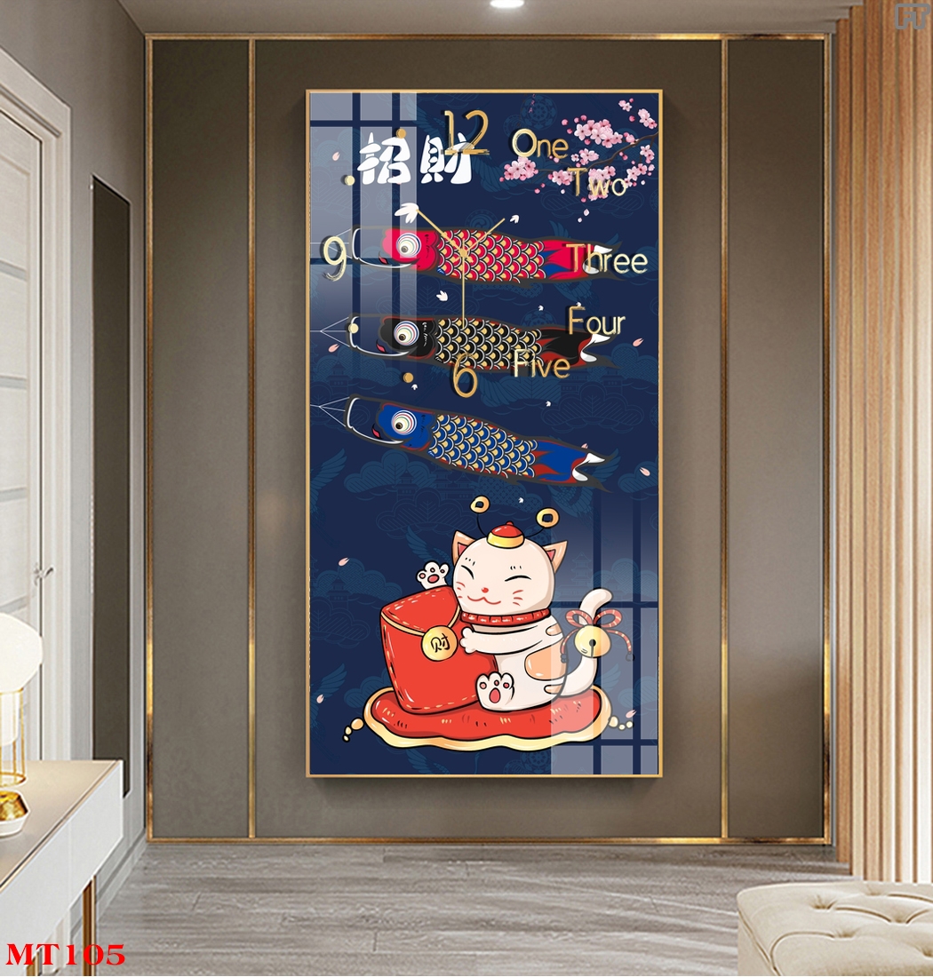Đồng hồ tráng gương Mèo Thần Tài dáng dọc