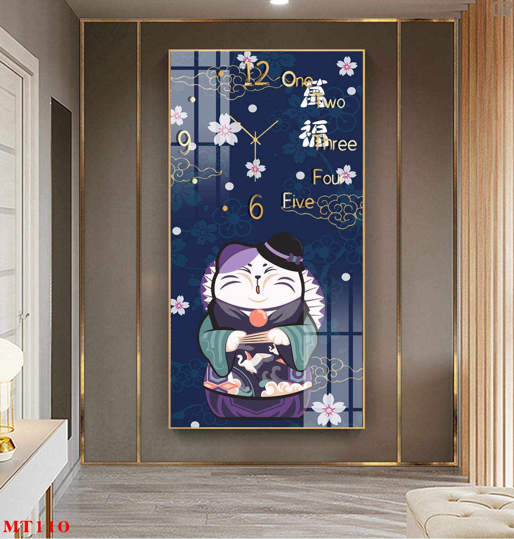 ĐỒNG HỒ TRÁNG GƯƠNG MÈO THẦN TÀI DÁNG DỌC HIỆN ĐẠI