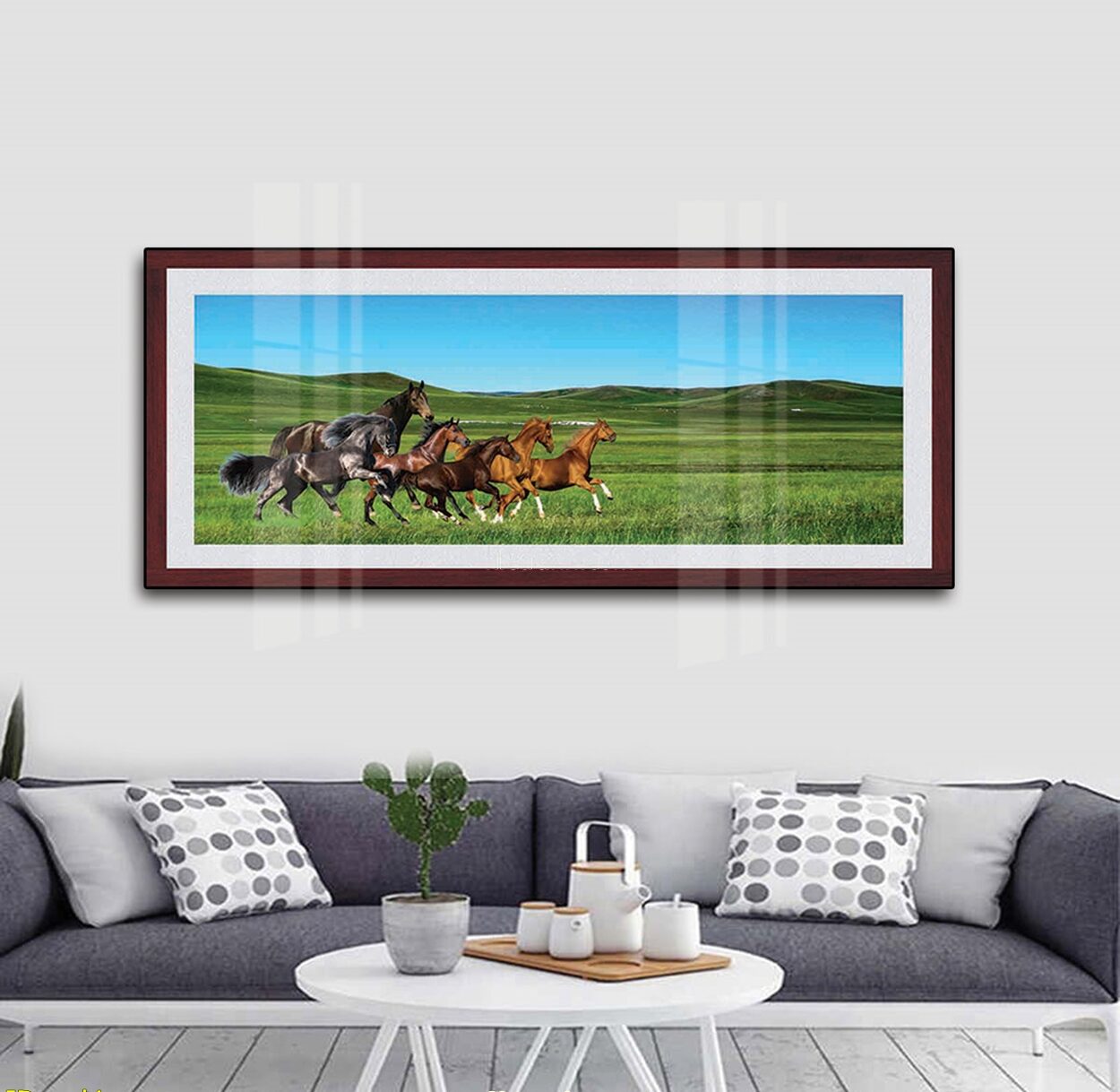 Tranh treo tường mã đáo thành công, tranh bát mã, tranh ngựa trang trí phòng khách, quà tặng tân gia