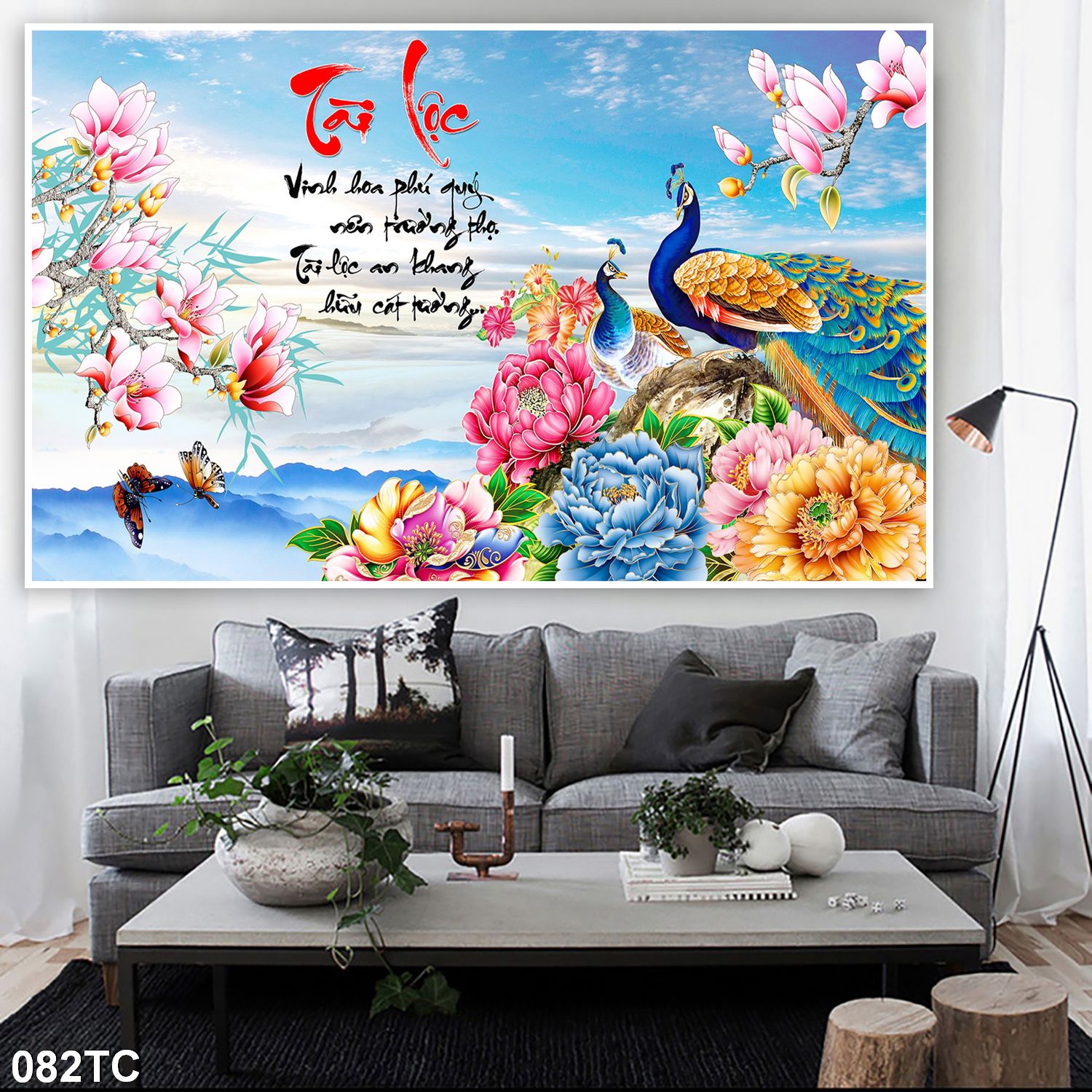 Tranh công mẫu đơn trang trí nhà, phòng khách, khách sạn, quà tặng