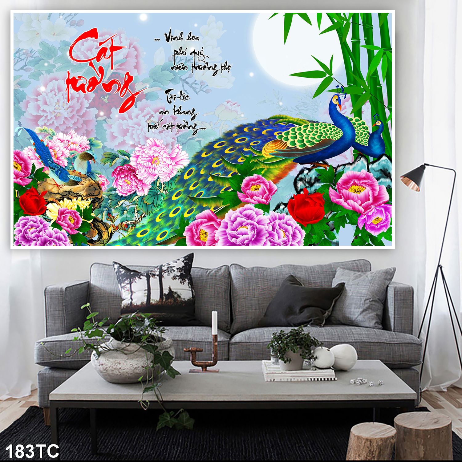 Tranh công mẫu đơn trang trí nhà, phòng khách, khách sạn, quà tặng