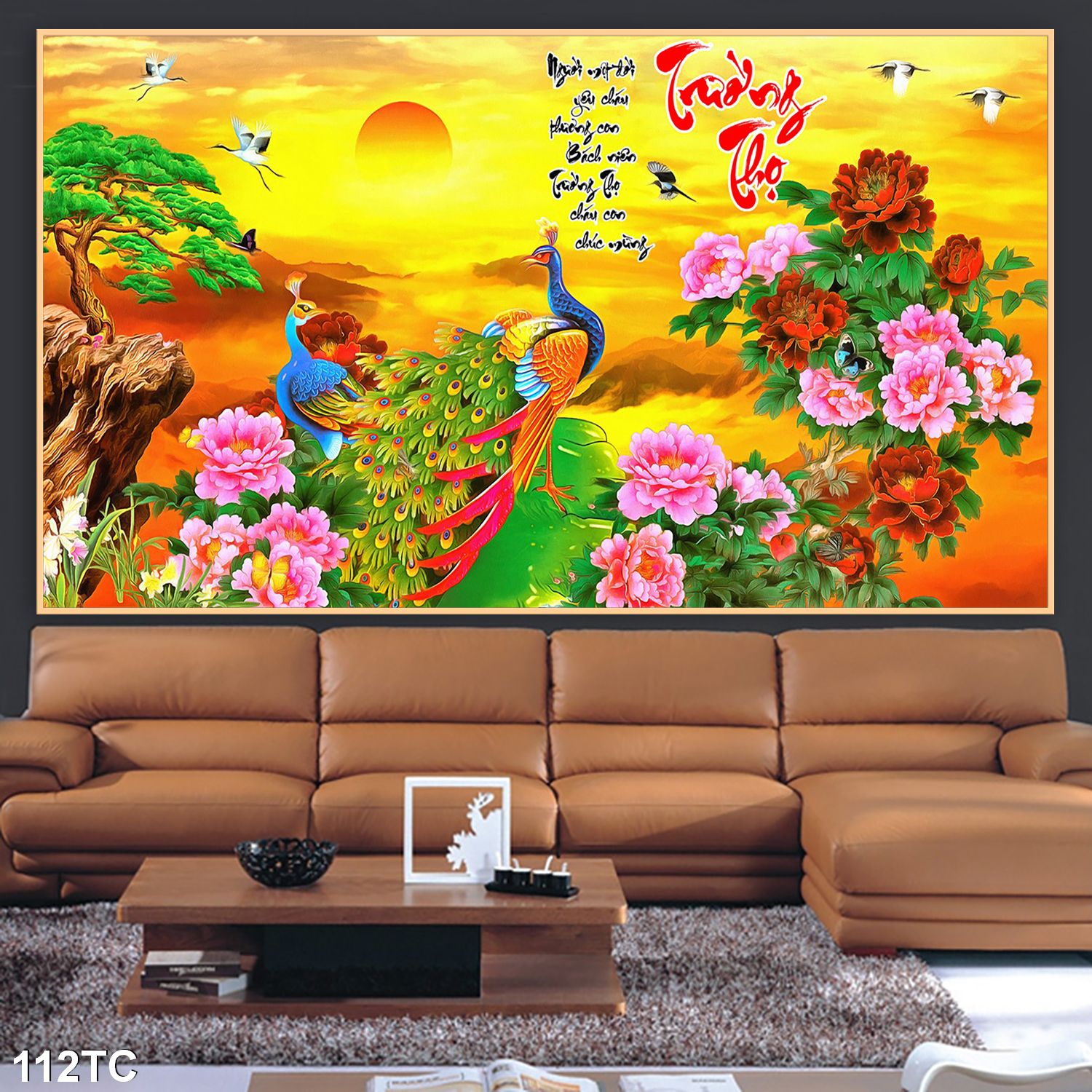 Tranh công mẫu đơn trang trí nhà, phòng khách, khách sạn, quà tặng