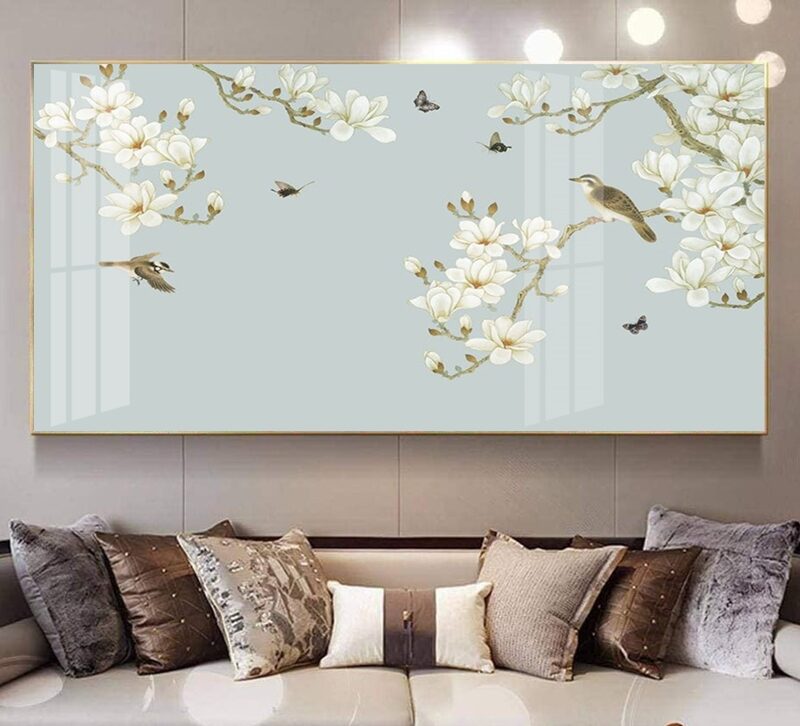 Bức tranh hoa chim khi được treo tại phòng khách sẽ thể hiện được tính cách, gu thẩm mỹ tinh tế nhưng không kém phần đẳng cấp của chủ nhà. Tranh hoa chim khi được tráng gương nhìn sẽ hiện đại, tinh tế hơn rất nhiều, nó giúp căn nhà của chủ nhà có điểm nhấn, đẹp đẽ, sang trọng.