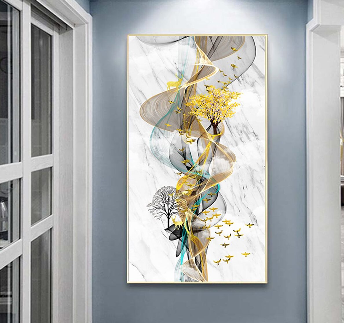 Tranh trừu tượng chữ nhật dọc tráng gương hiện đại, sang trọng CB08